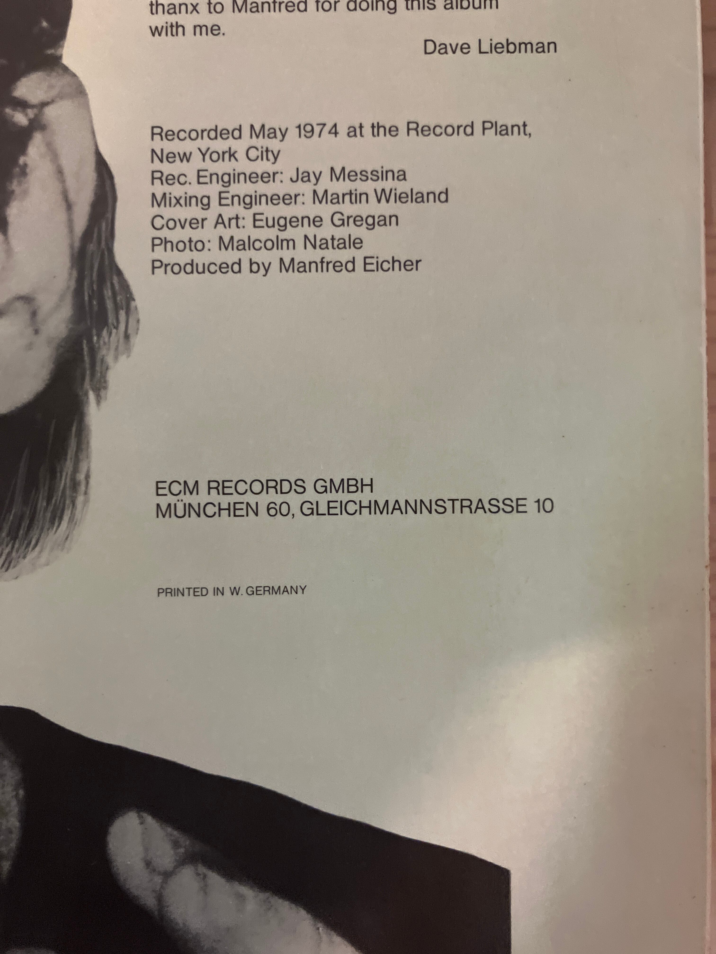 ECMの総師マンフレート・アイヒャーからの絶対の信頼がらあるサックス奏者デイブ・リーブマン。ジャズファンクからのブレイクも最高なGoli Dance、一曲目から上がります。ジャケットワークはコネチカット州にあったルックアウト・ファームの農場主ユージン・グレガン。東洋哲学に傾倒し自給自足の生活をしてたとか、農レコの目指すとこ笑